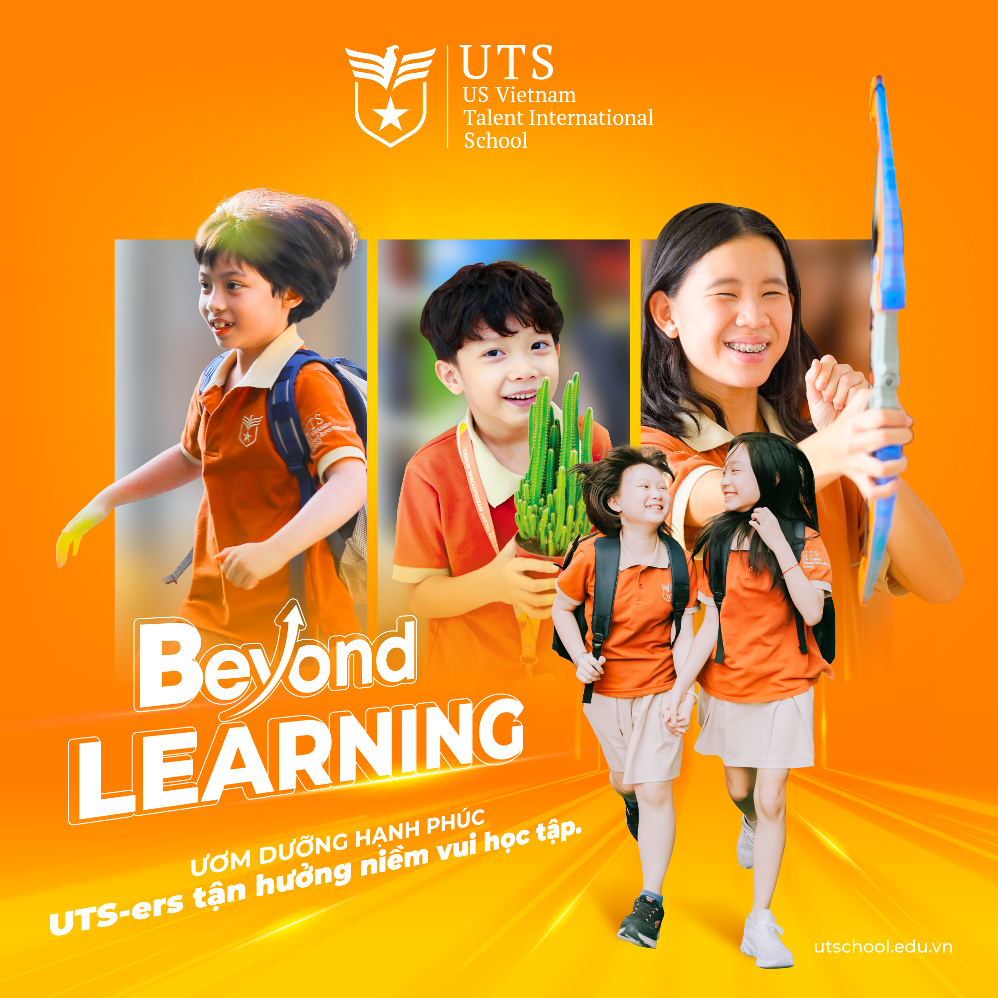 Định hướng giáo dục của UTS được thể hiện xuyên suốt qua tinh thần “Beyond Learning”. Tại UTS, việc học không chỉ diễn ra trong lớp học hay sách vở, mà còn là quá trình con được rèn luyện tư duy độc lập, phát triển kỹ năng sống, nuôi dưỡng cảm xúc tích cực và từng bước hình thành nhân cách tốt đẹp. Toàn bộ hành trình học tập và trưởng thành của học sinh được xây dựng trên 4 trụ cột cốt lõi: Hạnh phúc và sức khoẻ toàn diện, Sự phát triển toàn diện, Trải nghiệm học tập phong phú, và Trao quyền sẵn sàng cho tương lai.