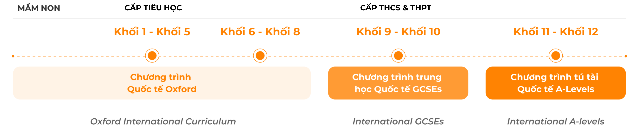 Từ năm học 2026 – 2027, UTS chính thức triển khai lộ trình tích hợp Chương trình Quốc tế Oxford (OIC) với Chương trình Giáo dục Phổ thông Việt Nam. Lấy chương trình Quốc tế Oxford Anh Quốc làm trục chương trình chính, lộ trình hướng đến phát triển nền tảng học thuật vững chắc, năng lực tiếng Anh vượt trội và định hướng du học bài bản, đồng thời đáp ứng đầy đủ các yêu cầu của Bộ Giáo dục và Đào tạo Việt Nam.